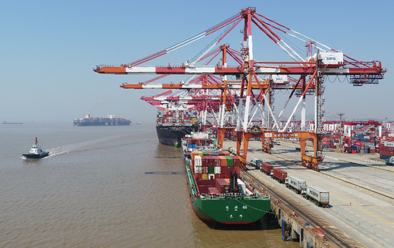 圖為上海洋山港集裝箱碼頭(無人機照片)。記者 丁汀 攝