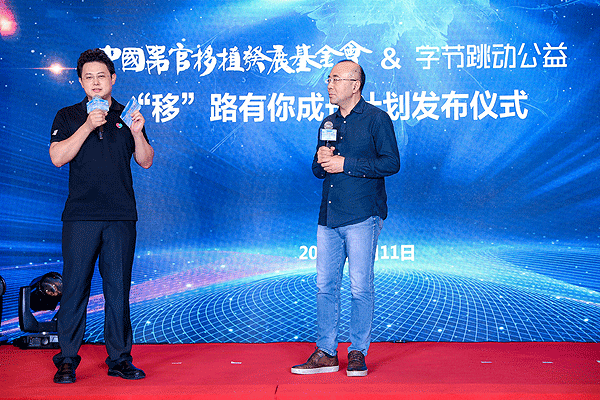 中國器官移植發展基金會聯合字節跳動公益共同發起“移”路有你成長計劃,雙方將共同作為“器官捐獻”的推動方。基金會負責引入更多器官捐獻與移植專業性、真實性的解讀,通過抖音、頭條等傳播平臺,讓更多人關注器官捐獻,并完成器官捐獻志愿登記。中國器官移植發展基金會副理事長兼秘書長趙洪濤、北京字節跳動科技有限公司副總裁李濤共同啟動該計劃。(圖片來源:中國器官移植發展基金會)