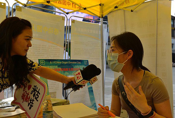現場,器官捐獻志愿登記的市民正在接受記者的采訪。