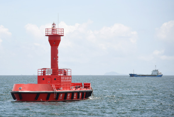 采用北斗航標遙測遙控裝置的一艘大型燈船投放在珠江口擔桿水道。