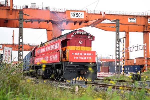 3月19日,一趟滿載著電子產品、機械零件、日用百貨等物品的中歐班列(渝新歐)十周年紀念專列徐徐駛出重慶團結村車站,發往德國杜伊斯堡。