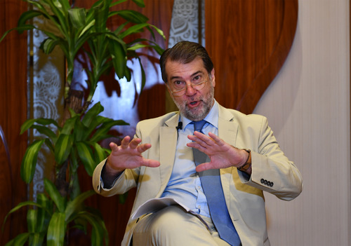 世衛組織全球瘧疾規劃主任佩德羅·阿隆索(Pedro Alonso)在北京接受新華社記者專訪。新華社記者 王君璐 攝(2019年6月14日)