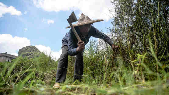 廣西融安縣泗頂鎮馬田村廟鴨屯群眾在收青蒿草。新華社記者 張愛林 攝(2020年8月18日)