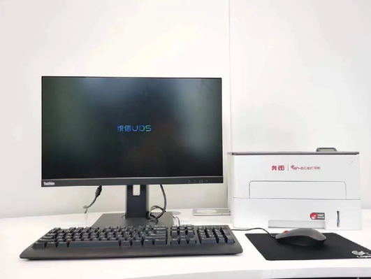 統信的系統、京東方的顯示屏、奔圖的打印機……在工行北京信創園支行內,從生產終端到辦公電腦,再到自助機具,大量使用國產設備。據介紹,該網點內搭建了以統信UOS“中國系統”為平臺,綜合運用龍芯、飛騰 、兆芯等“中國芯”的國產化智能應用新生態場景:從“前臺PC”到“智能終端”、從“普惠金融”到“政務一體”、從“消保服務”到“鄉村振興”、從“生命周期墻”到“企業主題日”,實現了國產品牌在金融科技領域的全部替代。