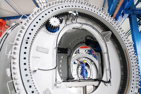 2020年上半年,中國一重與上海電氣集團(tuán)股份有限公司就風(fēng)電項(xiàng)目開展合作,由此進(jìn)入風(fēng)電領(lǐng)域。為保障項(xiàng)目推進(jìn),中國一重從各個(gè)車間抽調(diào)精兵強(qiáng)將,從風(fēng)場布局、風(fēng)電技術(shù)轉(zhuǎn)換、風(fēng)機(jī)整機(jī)制造安裝等方面,快速形成風(fēng)電裝配生產(chǎn)能力。2020年底,風(fēng)電產(chǎn)品下線,能夠年產(chǎn)600套風(fēng)電裝備(含組裝及關(guān)鍵部件制造)、400套3兆瓦以上風(fēng)機(jī)葉片。