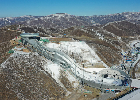 國家跳臺滑雪中心是北京冬奧會張家口賽區工程量最大、技術難度最高的競賽場館。(記者 楊世堯 攝)