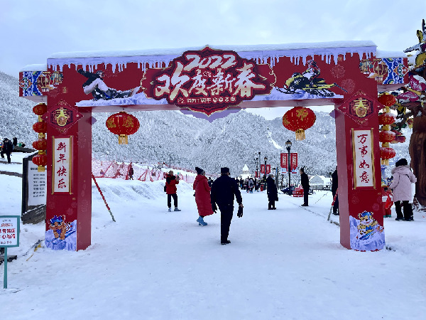 西嶺雪山滑雪場(chǎng)的虎年新春布景(2月4日攝)。