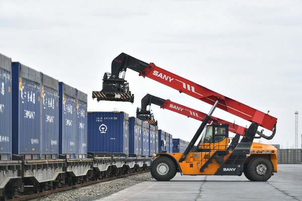 工人在鹽湖進行卸貨作業。記者 潘彬彬 攝