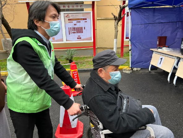 為了縮短核酸篩查等候的時間,盡可能地為居民提供方便,虹橋鎮各居民區的社區干部可沒有少動腦筋。“北歐風”排隊?有條件,盡量安排上。腿腳不便?有志愿者,不怕。學生要上網課?這算什么難題,走綠色通道!