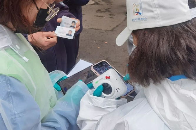 在虹橋花苑、龍柏二村、龍柏四村等居民區,社區干部手中除了PDA外,還有一個”秘密武器”喵喵機。原來,這是用來為沒有手機的老年人打印二維碼的。“我們社區老人沒有手機的還挺多的,之前就想著怎么操作。正好有同事談到這個喵喵機,可以讓志愿者幫助登記好信息先打印出來,方便PDA掃碼,所以居委干部就自己采購了三臺。”一位社區干部說道,今天一天,這個喵喵機可發揮大作用了,幫助300多名居民迅速完成了信息的登入掃碼。