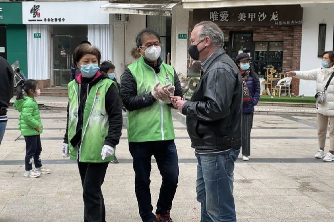今天一早,5、6名韓籍志愿者已經來到核酸篩查現場,他們要承擔現場的外籍人士引導和翻譯工作。韓籍居民樸昌柱就是其中一員,他說:“我是小區的居民,在上海也有20年了,本身也熱愛做公益,我還是韓籍人士微信群的群主,現在群里有1100多位居民。疫情工作是大家的事情,做志愿者工作當仁不讓。”
