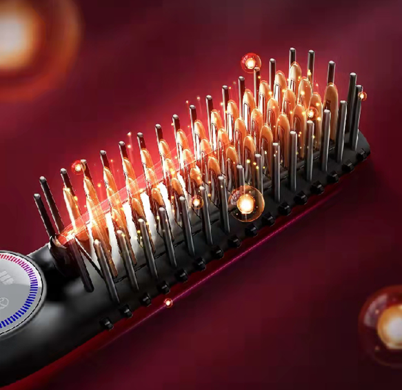 細節設計處,采用全新的弧形梳齒更貼合頭部,使用更舒適;側邊的小梳齒更方便抓取發絲;外圈的梳齒具有防燙設計,讓使用者在不被燙傷的同時第一時間就能感受到添可秀萬2.0的造型溫度。