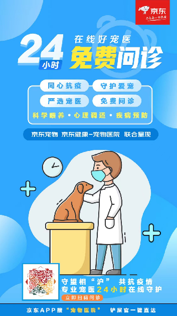 針對目前上海寵物主面臨的常見問題和實際困難,下周起,京東健康寵物醫院將推出寵物醫生免費視頻問診等定向舉措,與上海寵物主一起共渡難關。疫情當前,京東寵物將時刻守護在你和寵物身邊,提供專業、細致、全面、安心的寵物診療和咨詢服務。
