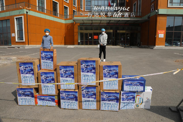 而后,調研組一行,來到池西區萬達悅華隔離酒店,慰問下沉干部和酒店工作人員。在隔離酒店前,為逆行而上的一線工作人員送上“暖心慰問品”,感謝他們的辛苦付出和家屬的支持。在詳細了解了隔離酒店疫情防控及服務保障工作后,耿德勇親切叮囑酒店專班負責人,要嚴格落實防疫有關要求,加強酒店閉環管理,做好個人防護及消殺、生活垃圾處理等工作,堅決做到隔離點零交叉感染、零疫情外溢。