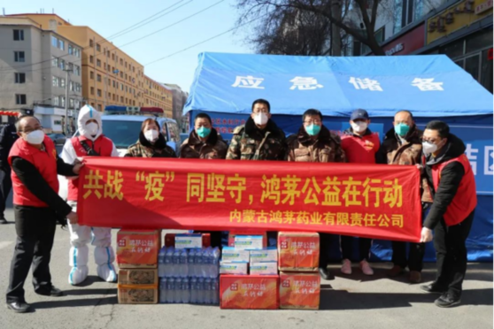 疫情暴發(fā)后,鴻茅藥業(yè)第一時間向內(nèi)蒙古自治區(qū)紅十字會捐款110萬元,其中100萬元專項(xiàng)用于對內(nèi)蒙古自治區(qū)抗擊疫情醫(yī)護(hù)人員的援助,10萬元專項(xiàng)用于在疫情防控一線崗位上因公殉職的突泉縣民警何建華同志的家屬慰問援助金。在疫情期間,鴻茅藥業(yè)多次向內(nèi)蒙古自治區(qū)烏蘭察布市涼城縣紅十字會捐款捐贈支援抗疫,同時成立公益專項(xiàng)小組,向呼和浩特市社區(qū)、幼兒園、環(huán)衛(wèi)團(tuán)隊(duì)等捐贈抗疫物資,總金額達(dá)數(shù)百萬元。