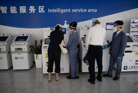 在上海銀行徐匯支行營業廳,客戶在營業廳辦理存取款業務。新華社記者 金立旺 攝