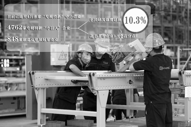 整體來看,工信部數據顯示,“小巨人”企業的平均研發強度達到10.3%,高于上市企業1.8個百分點。