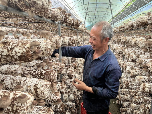 道真縣立足成渝需求打造“菜縣菇鄉”,食用菌已占據重慶70%市場。圖為道真縣洛龍鎮五一村村民陳敏在自己承包的食用菌大棚里忙碌。新華社記者 李驚亞 攝