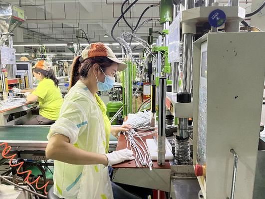桐梓縣“重慶工業園”重點承接成渝轉移的產業,圖為工人正在生產車間里忙碌。新華社記者 李驚亞 攝