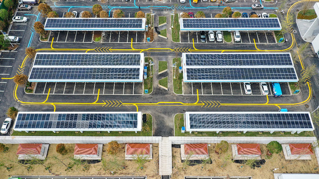 2022年7月20日在四川宜賓三江新區拍攝的“光儲充檢”充電站。記者 王曦 攝