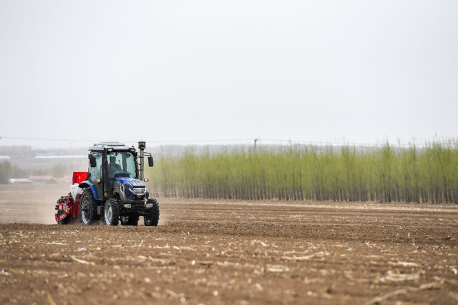在吉林省四平市梨樹縣四棵樹鄉(xiāng),農(nóng)民駕駛農(nóng)機進行春耕作業(yè)(4月20日攝)。新華社記者 張楠 攝